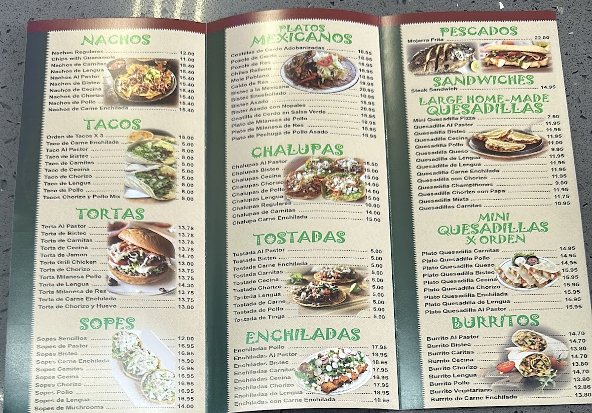 Crispy corn tortilla topped with beans, lettuce, cheese, sour cream, jalapeños and meat of your choice. Choose a meat: Pollo (Chicken), Carnitas (Fried Pork), Chorizo (Sausage), Lengua (Tongue), Carne Enchilada (Spicy Pork).